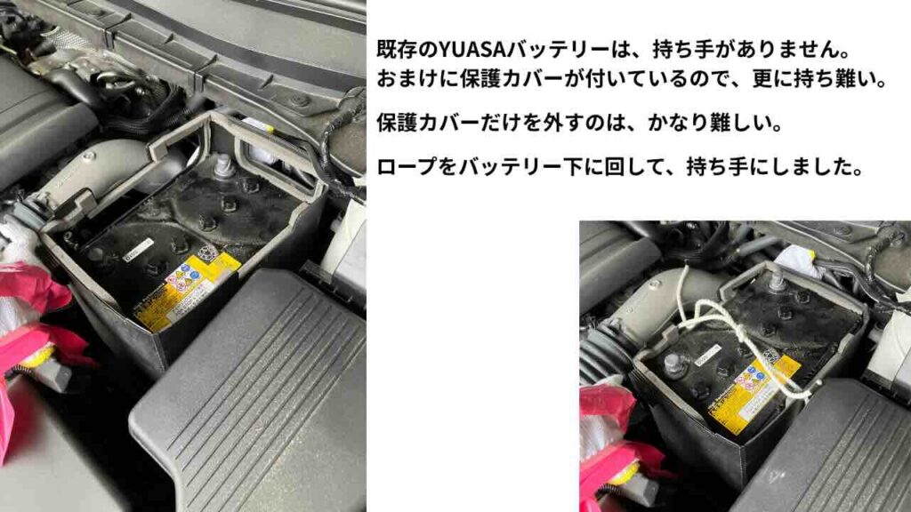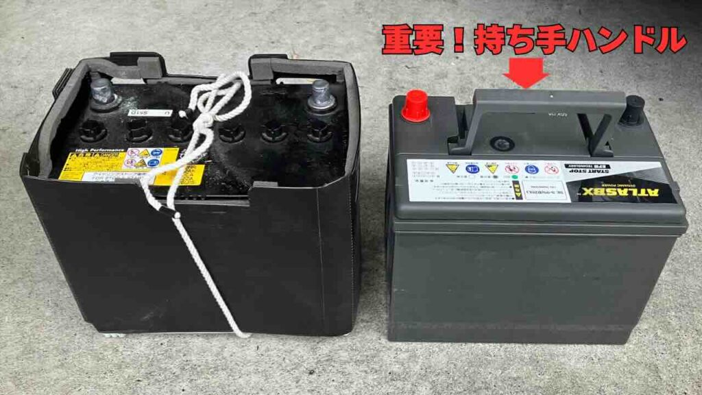既存のYUASAバッテリーに持ち手が無かったからです。